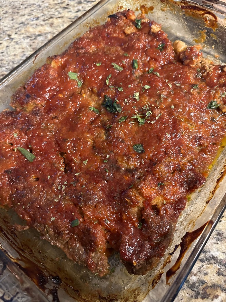 Mix all ingredients for the meatloaf and place and shape into casserole dish. Press indentions throughout the meatloaf with your fingertips. (The sauce will fill them) Bake at 375 for 35 minutes. Drain and add the glaze evenly with a spoon or using a pastry brush.