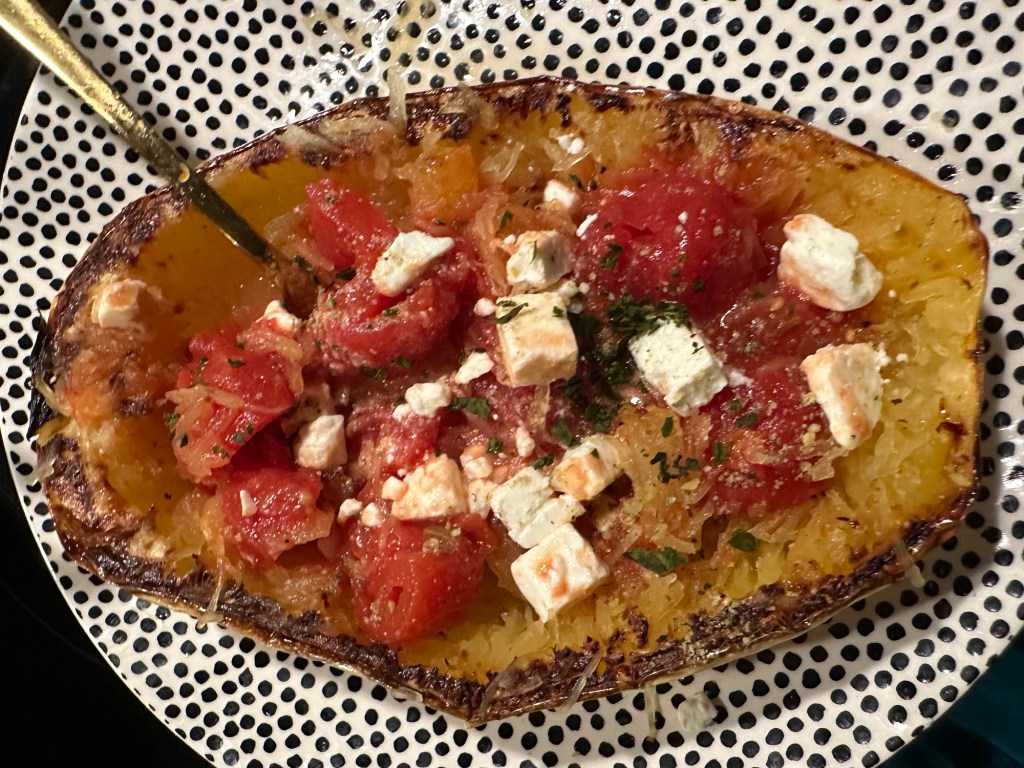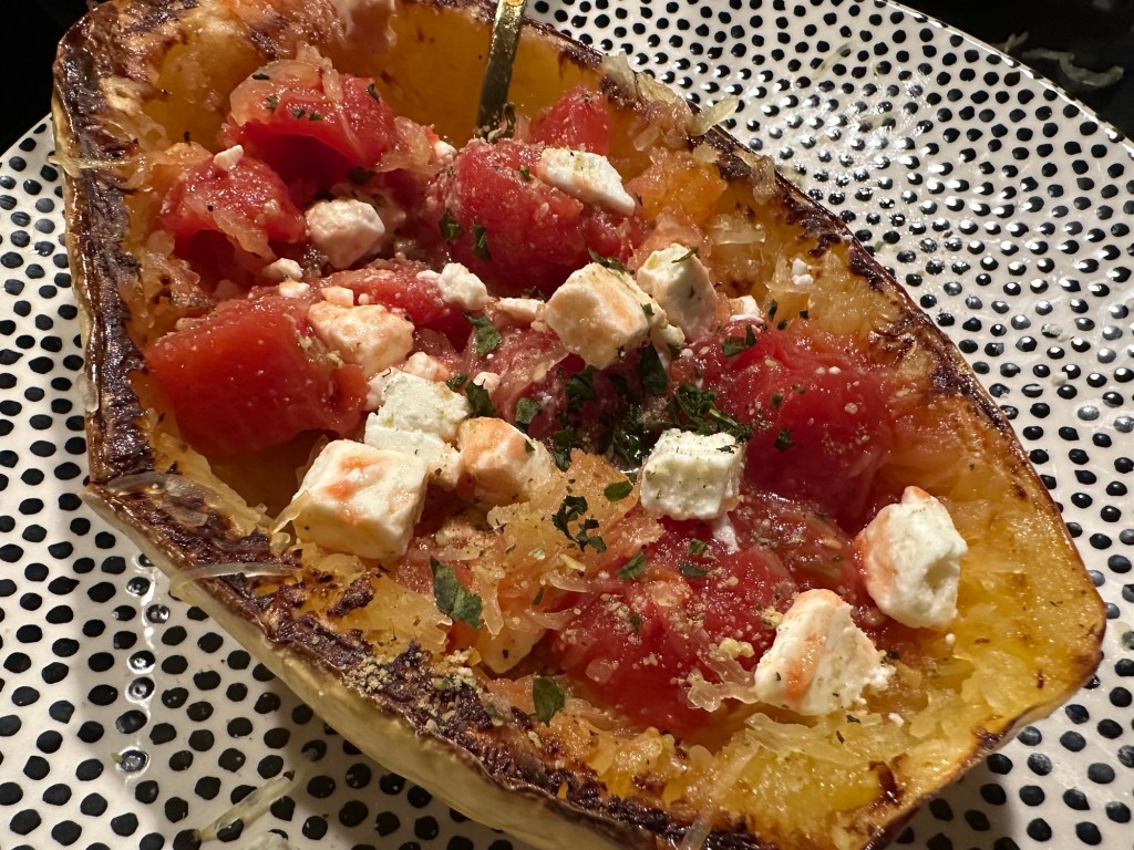 - 1 large Spaghetti Squash halved and seeds removed