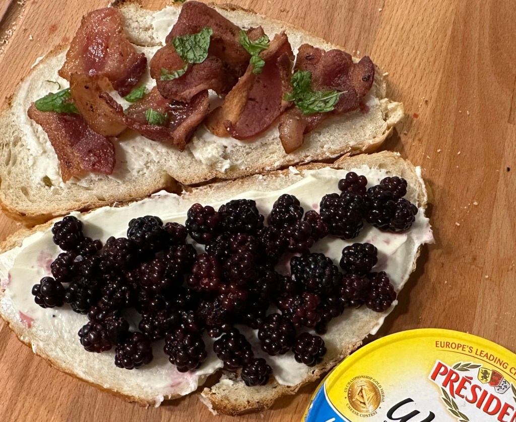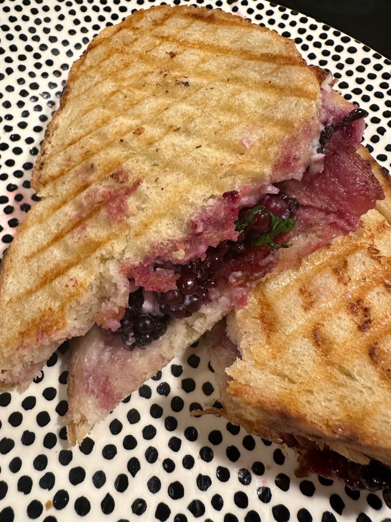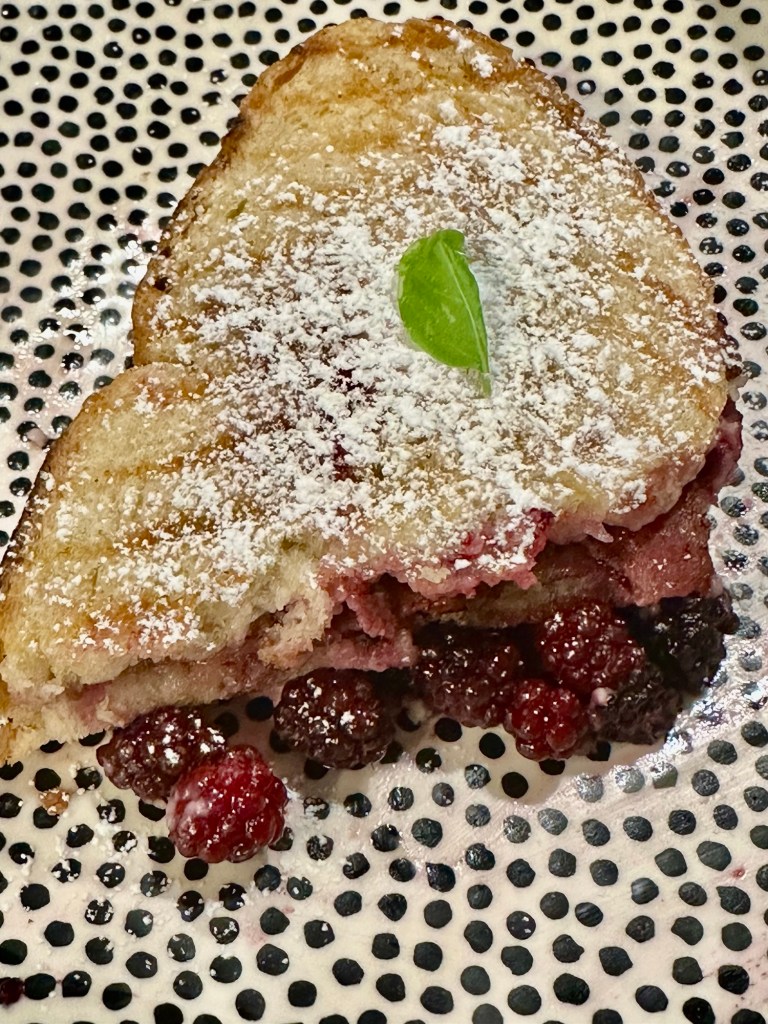Ok, I tried the blackberry grilled cheese that went viral a few weeks ago with some store bought blackberries, but I decided to do it My way and I liked it so much better! I thought the jalepenos and Swiss cheese were a little much. I treated this one like a Monte Cristo with that little sprinkle of confectioners sugar that it NEEDS if you’re using fresh blackberries instead of jam.