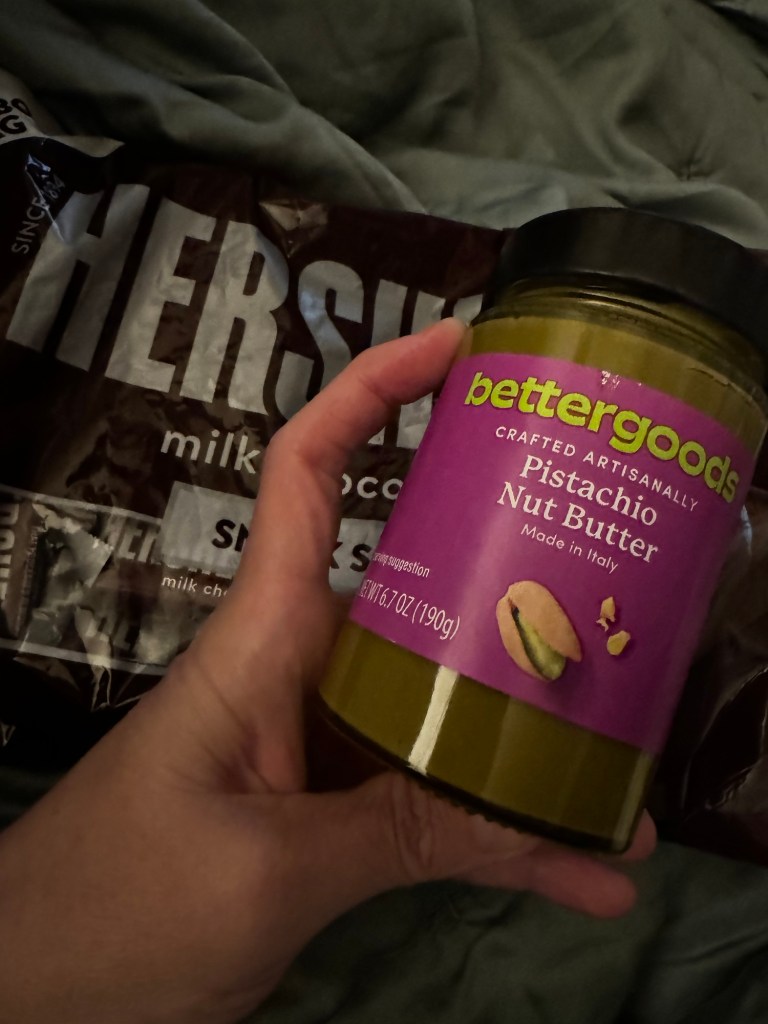 Yesterday I had a few mini hersheys with pistachio butter. Delicious.