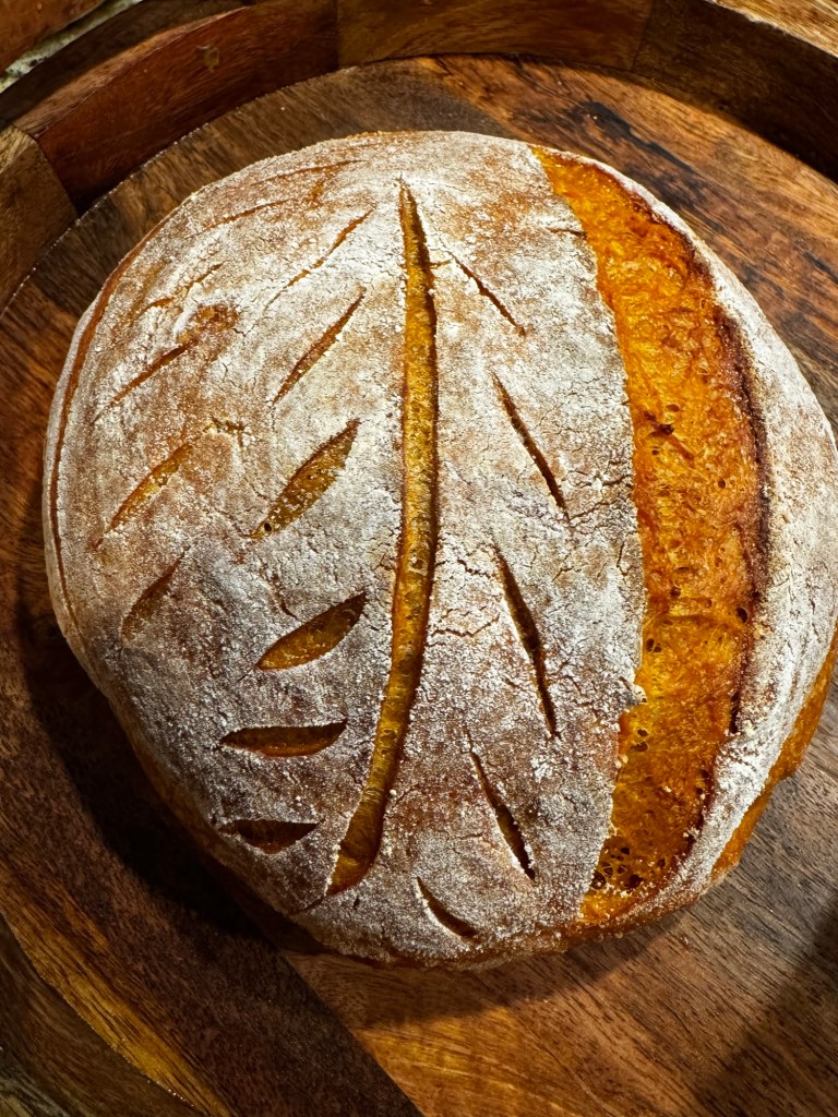 For those who missed my post about it, it’s just a basic sourdough recipe with the water subbed out with pumpkin puree’ and 50 extra grams of starter. It’s so soft and delicious!