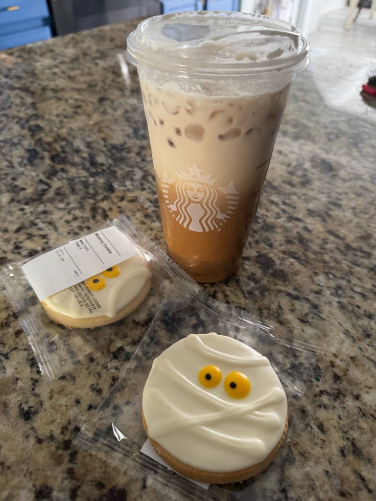 I had a quick salad for lunch with my cute husband and then we ran through Starbucks for after school treats..