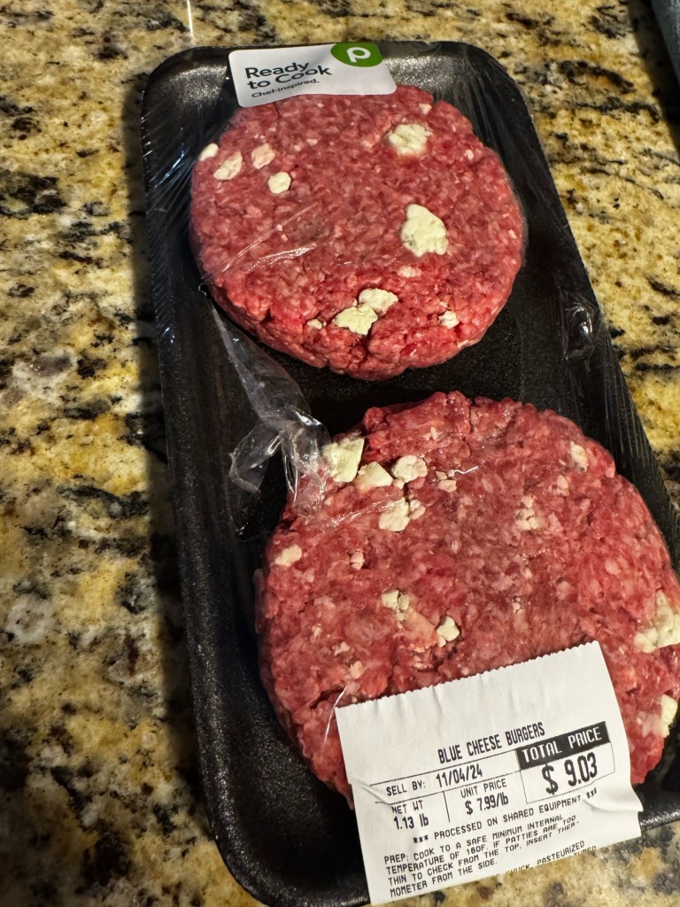 And just to mention… Gary made us some beautiful blue cheese burgers on brioche last night, so I splurged! I ate a little more than half of it because they were over 1/2 lb of beef per patty. Huge! We picked them up at Publix and they were sooooo delicious! I may never make my own burgers again. I could have just eaten the meat like a steak and skipped the bun altogether. We didn’t even use the Blackstone.. he just tossed them in my skillet.