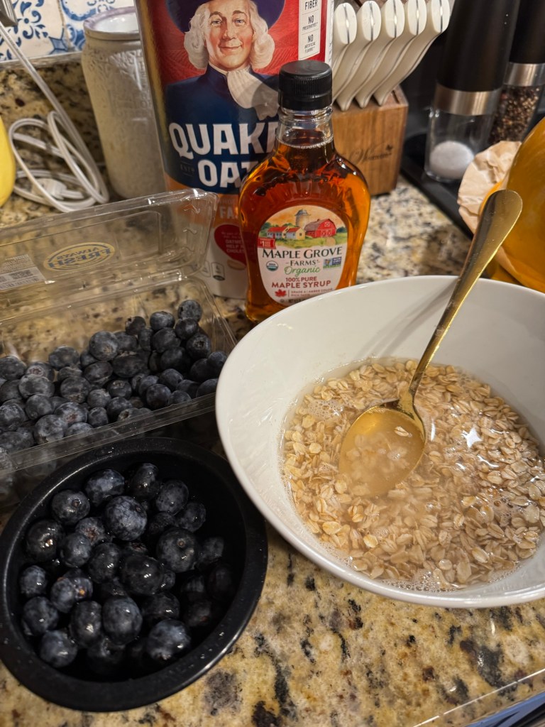 So far I’m not minding this low histamine stuff. I love oatmeal with maple syrup and blueberries. I took a nap early and Gary had made me grilled lemon pepper chicken thighs too. I married the perfect man. 🤍