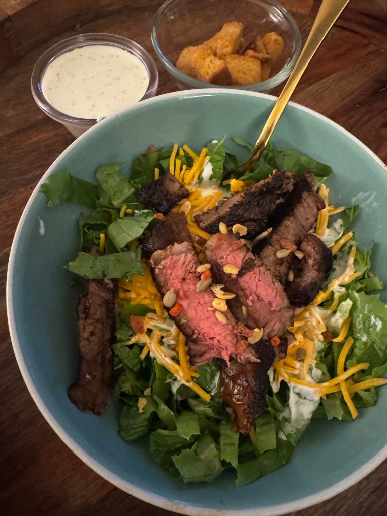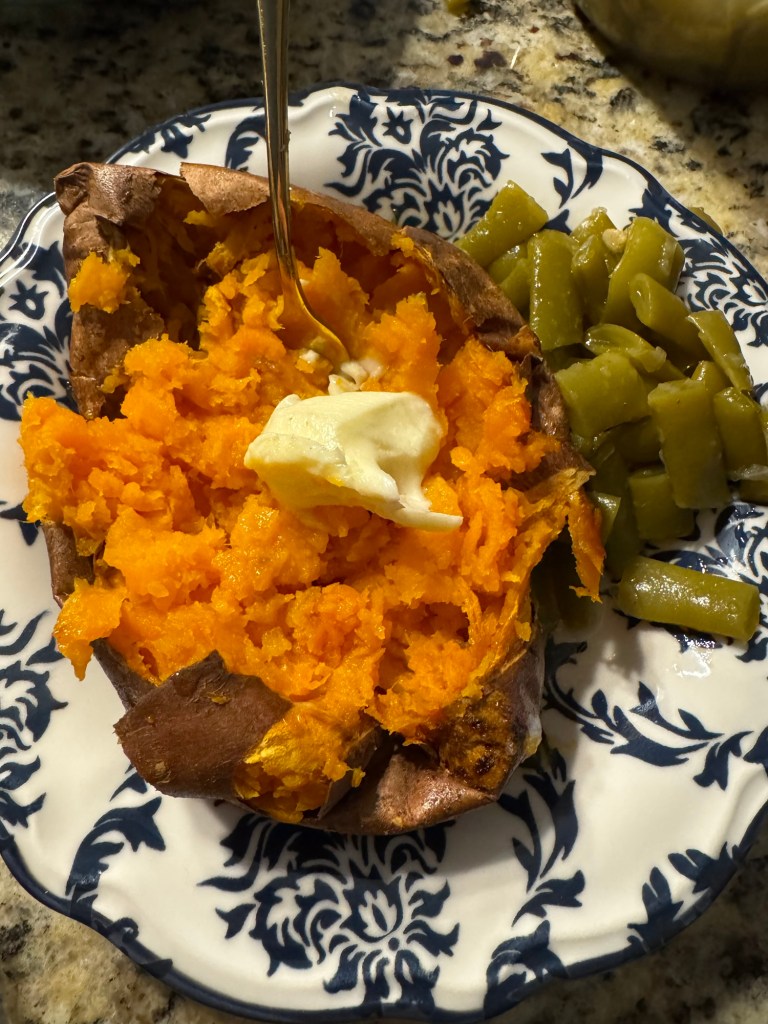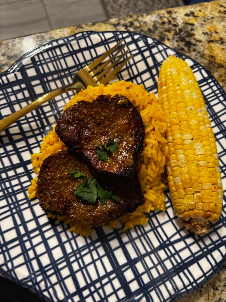 Sweet Potato with Maple and ButterSirloin, Turmeric, Cilantro, Sweet Paprika and Garlic Rice, Corn on CobbPublix Wrap with Chicken, extra Hummus, Cucumbers, Onions, Banana Peppers and Garlic AioliLow Fod Map Paleo Seasoned Chicken ThighsSteak SaladChick-fil-A wrap 🤍This is an old photo from last year, but I made this minus the tomatoes and pineapple. Chicken thighs stuffed with tropical flavored rice (turmeric, paprika, garlic, onion, brown sugar, pink salt, smoked paprika) and air fried Brussels.