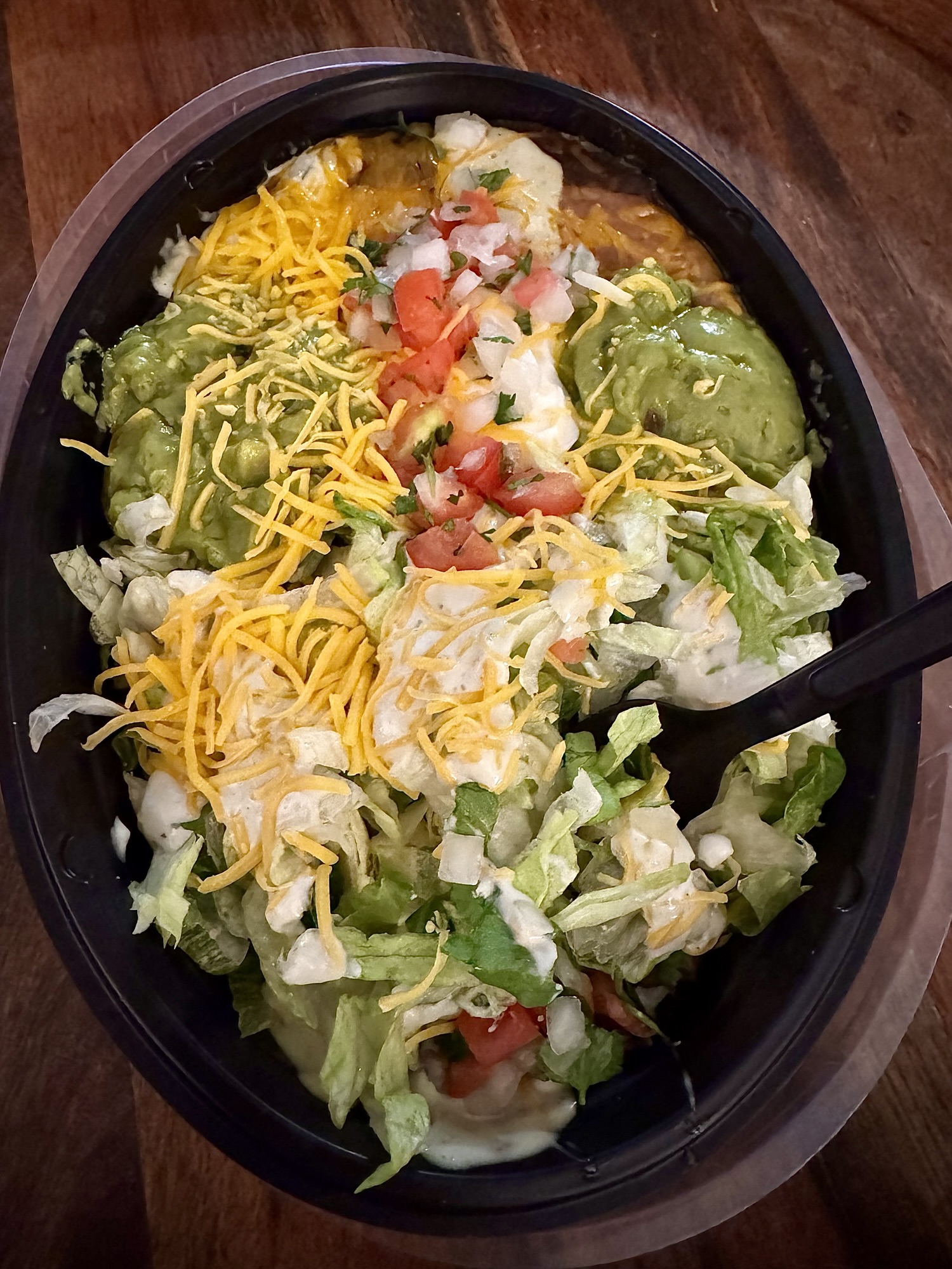 I added 1/2 cup of chopped turkey at home. You can get the chicken bowl there, but it’s loaded with sodium.