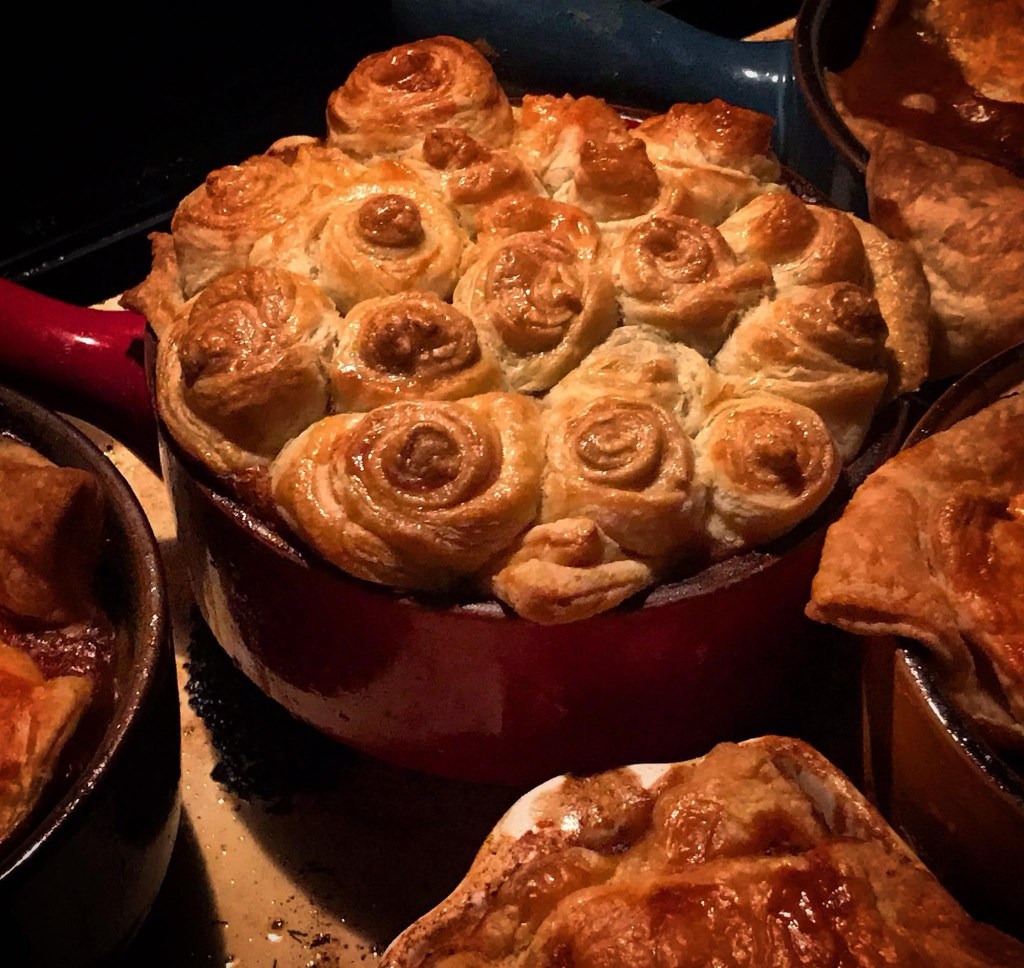 On Easter I make Shepard “Pot” Pies with Puff Pastry. I roll the pastry like little budding roses. You can kind of pluck them out and dip them into the potatoes and gravy. Delicious!