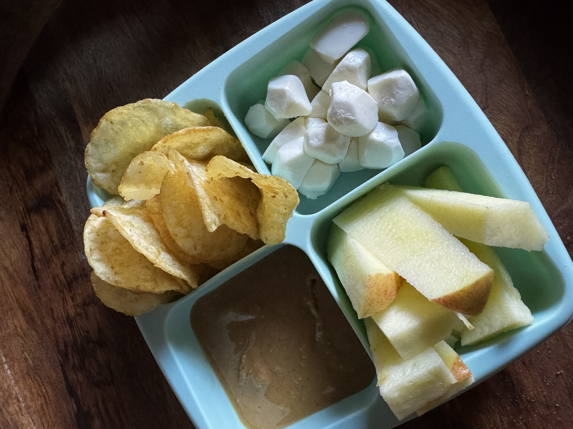 Here’s my snack before dinner tonight 🙂 Everyone is eating chips and dip and leftover cookies, but I’m sticking to it! Btw.. This snack tray has 2 oz portions. My hand is actually longer than the tray.