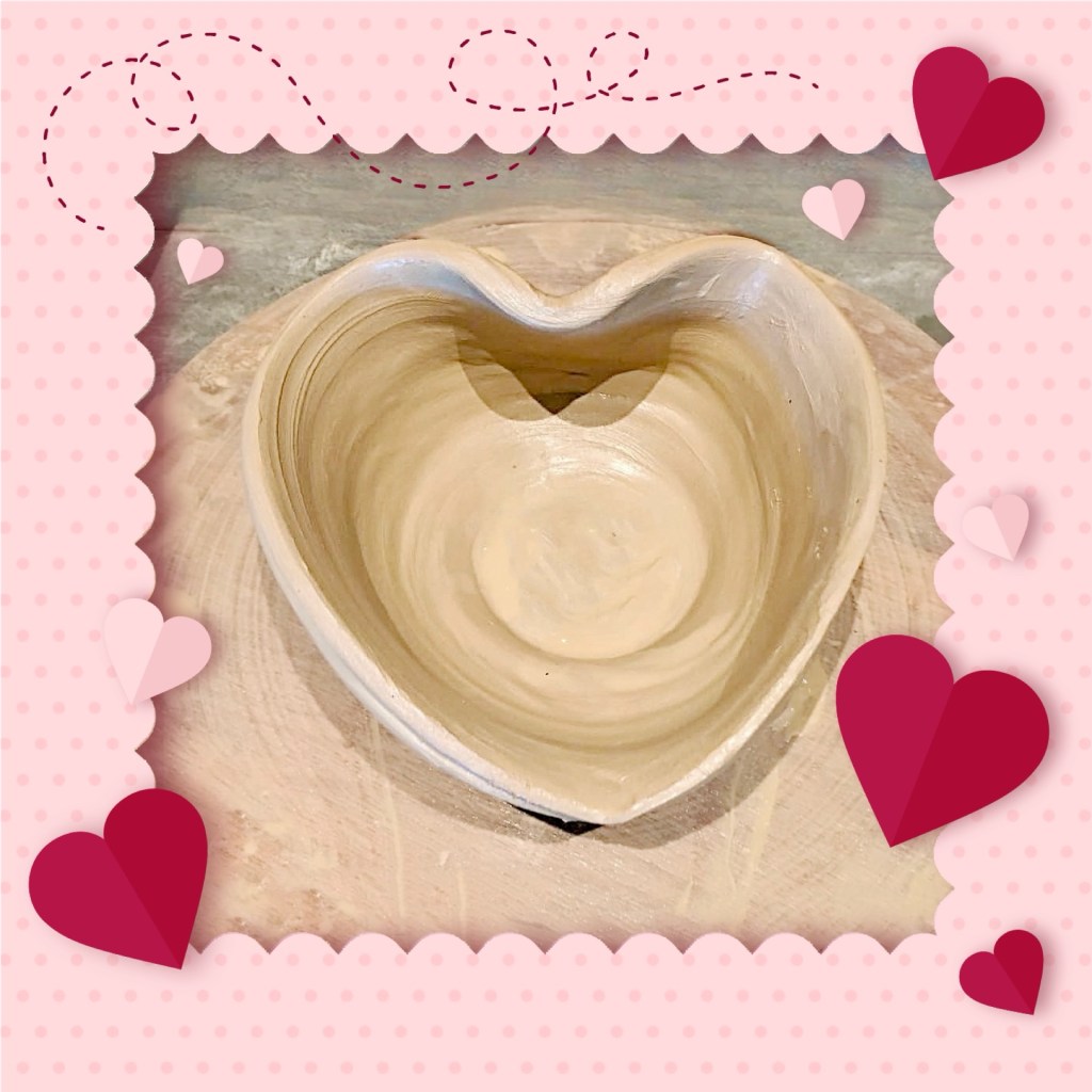 Making cute heart Bowls. I think I’m going to paint them with pink and red glaze. 2 red and 2 pink. 😍 They’re going to be pretty big, about 9 inches in width. It’s also like 30 degrees in my garage. 😬