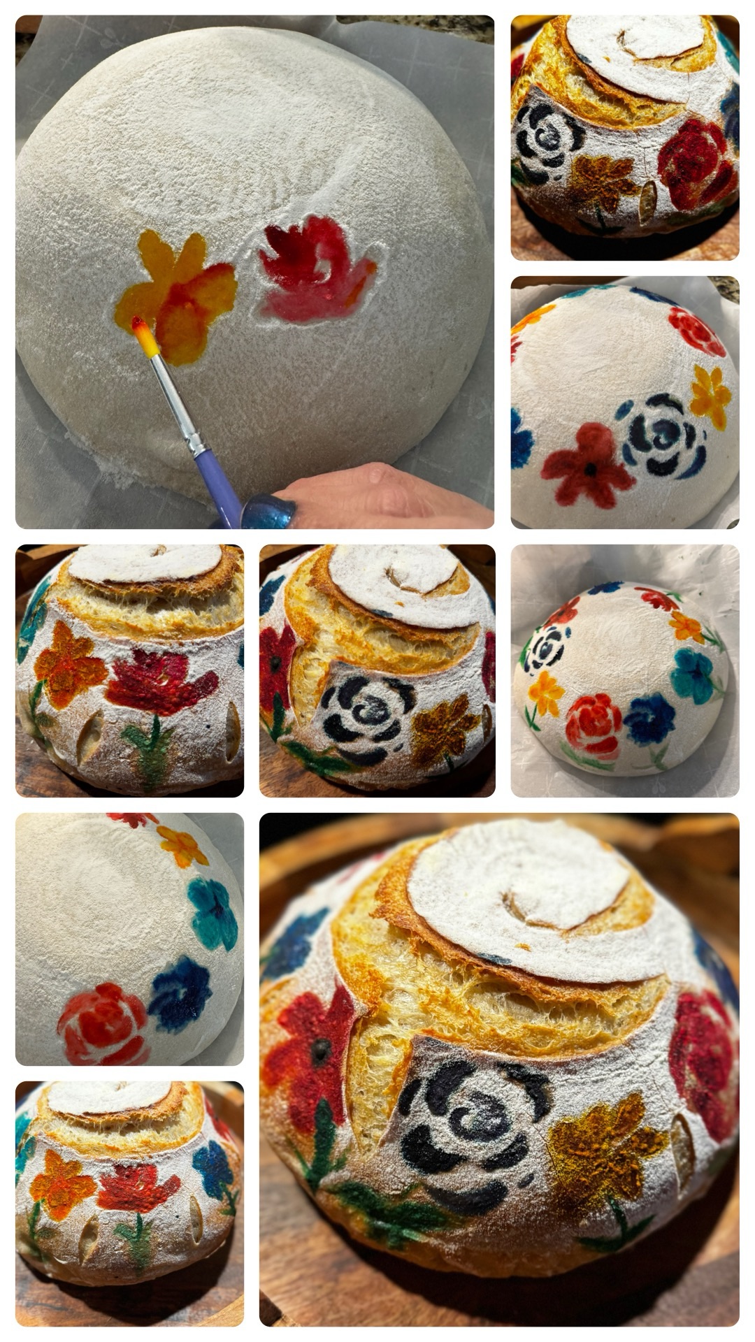 I had an itch to paint this morning but it was too cold to venture into the garage. I had a boule of sourdough in my fridge that needed to be baked, so I pulled out my culinary paints. So fun!