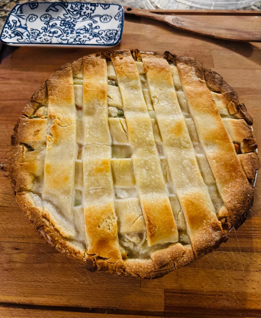 It’s a stormy night so we’re enjoying Chicken Pot Pie and a movie marathon. Gary’s off for 6 days! 🤍🙌🏼 It smells soooo good in here!