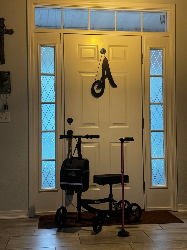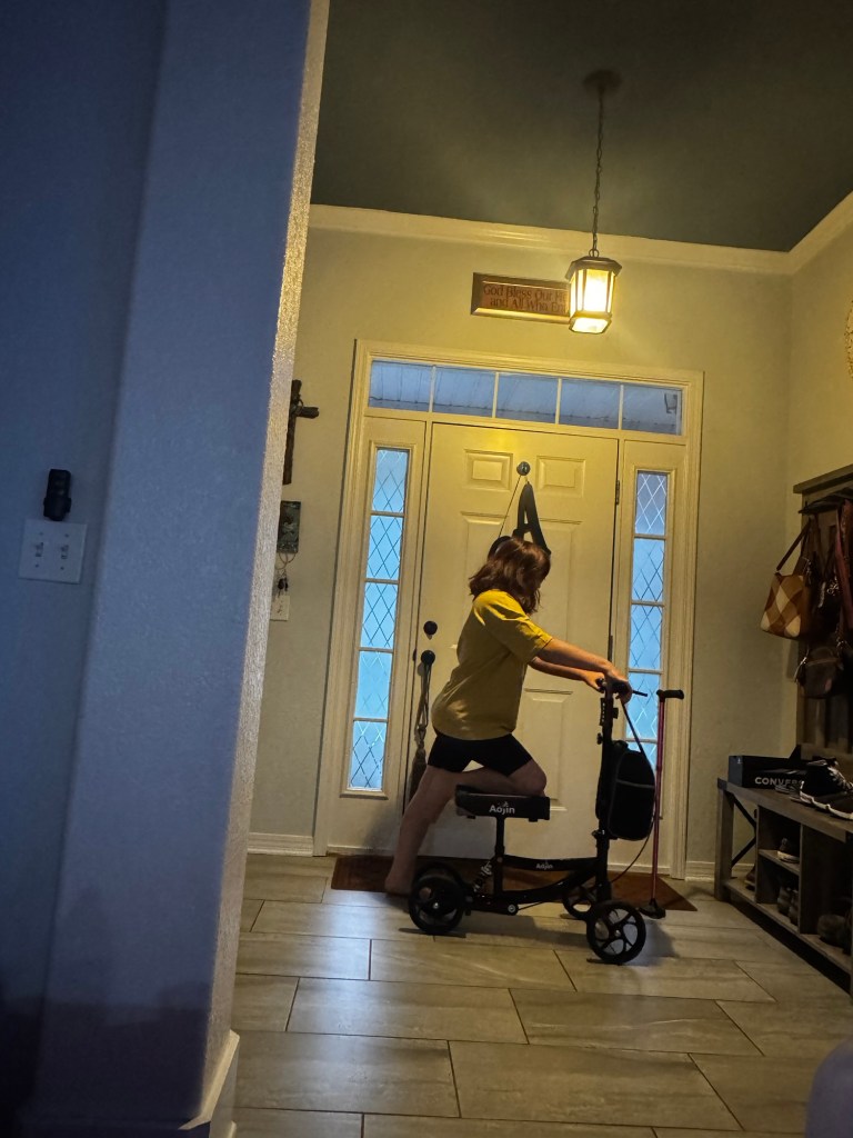 The knee scooter – has eliminated the need for crutches, so no more underarm pain!! The only issue is that the kids wanna play on it. 🤣