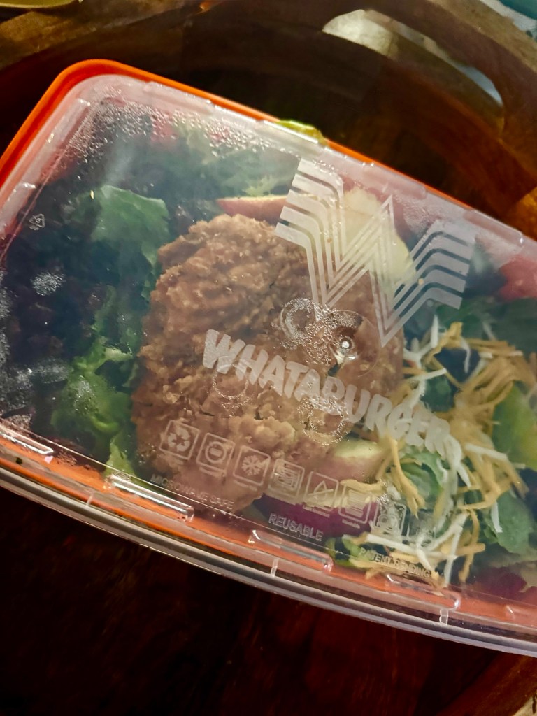 Kinda hard to see in my orange container 😂 It’s from a Whataburger salad, and I keep them because the lids are so solid and vented. Perfect for produce!