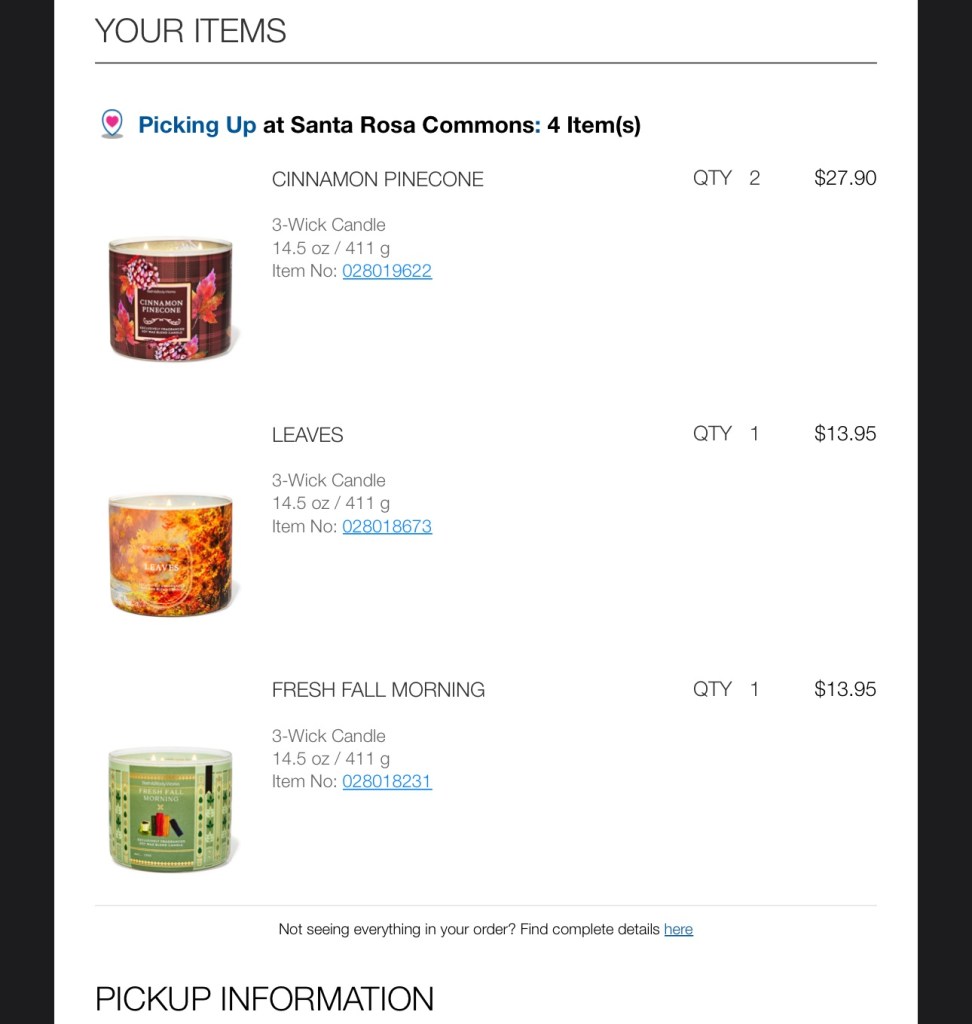 I got 2 of the Cinnamon Pinecone because that sounds lovely! I hope I picked good ones. I usually shop in store, but I’m trusting the reviews this year. Fingers crossed! 🤞🏼