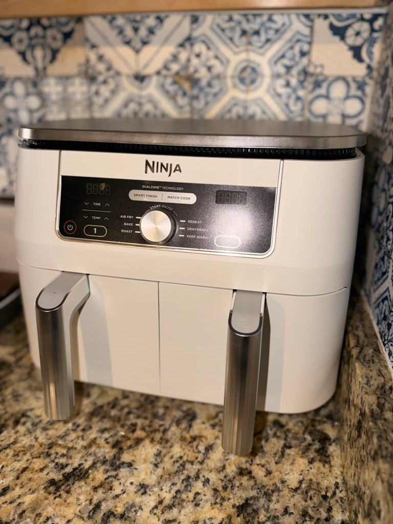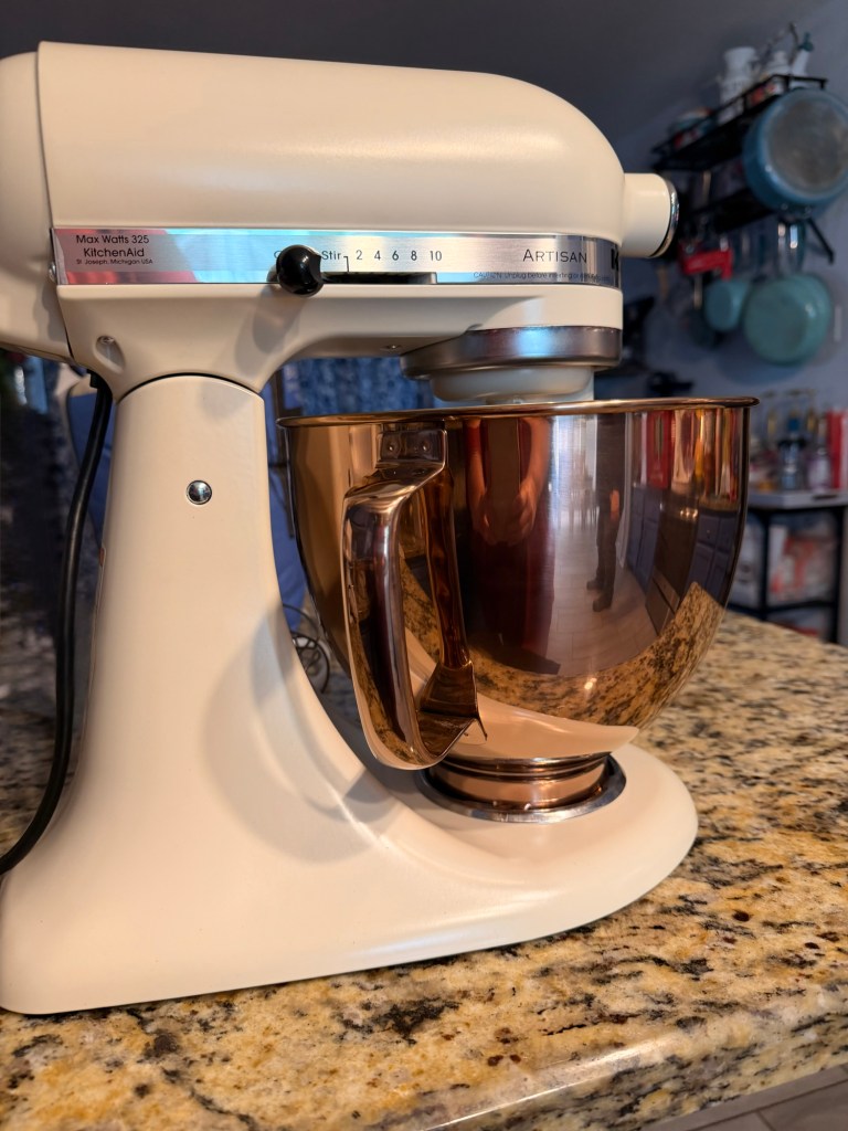 I’ve slowly been replacing toxic pans and plastics in our kitchen recently. After finding out our air fryer was a HUGE cancer risk, I started finding out about other things we use too, so Gary ended up surprising me with a Ninja Dual Zone air fryer that had PTFE- and PFOA-free baskets, a Ninja Foodi 14 in 1 cooker, bc my favorite crockpot top cracked and a beautiful new mixer bc my other one smells like burnt rubber when you flip it on. He originally purchased me a blue kitchenaid but the power supply stopped working and we had to return it. We exchanged it for a second one and it did the same thing after I used it a bit, so we went to Target and found this one designed by Joanna Gaines. It’s the Magnolia collection.