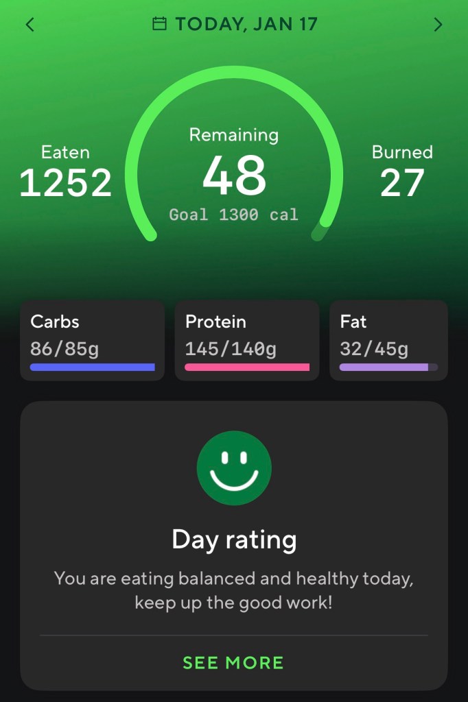 Thats the closest I’ve gotten to my hitting my macros. I usually go over in carbs. It gets harder when you go down to 1200-1300 calories.