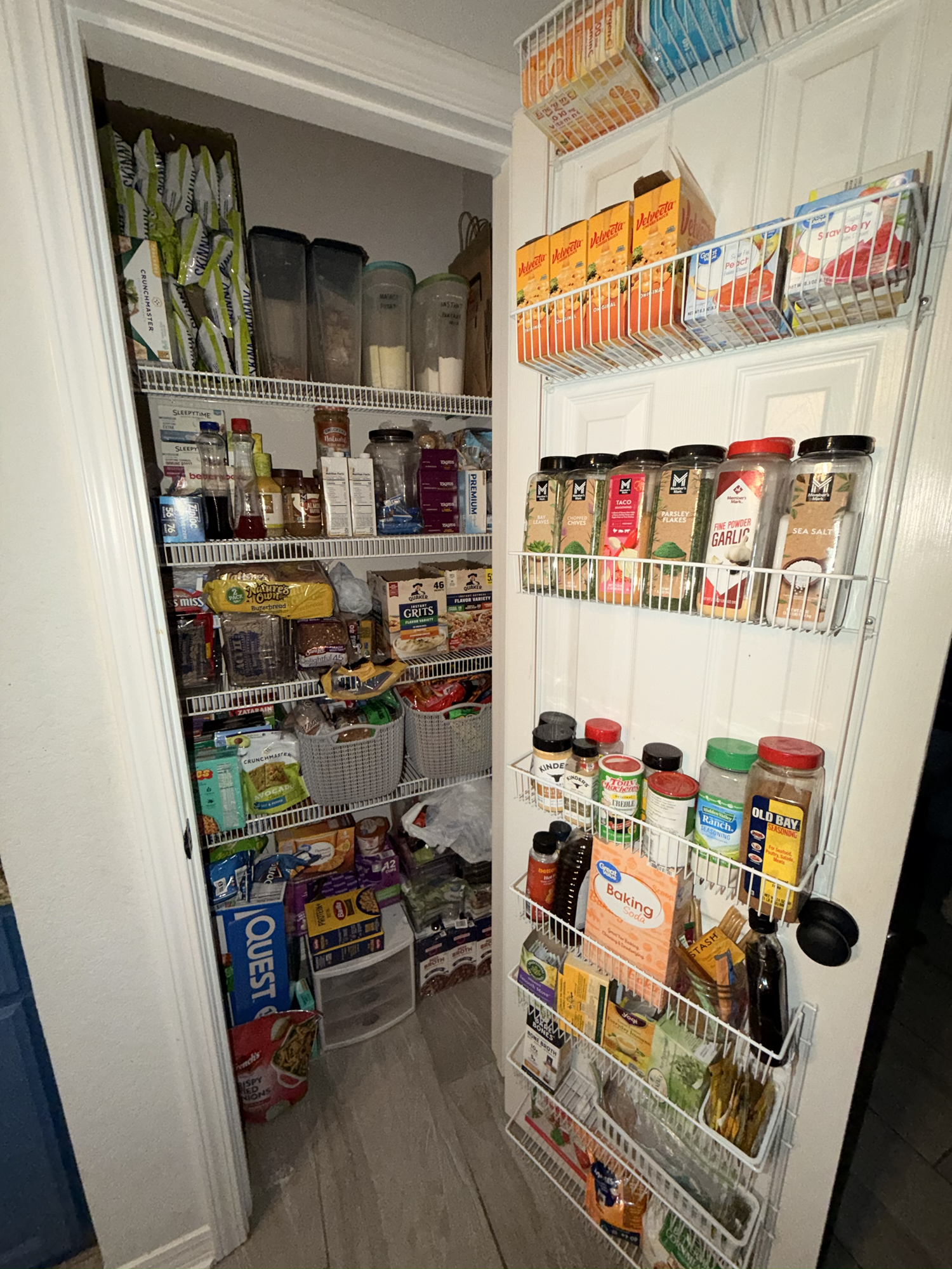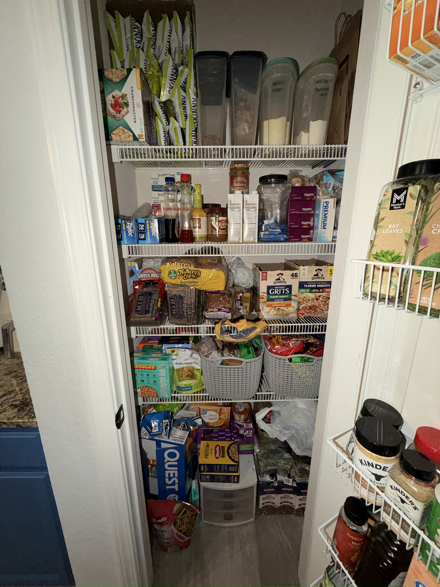 It’s a small pantry but thankfully I have 2 big spice cabinets and a lazy Susan under my countertop/bar. I can at least hide our canned goods and most of my small appliances under there. I’m exhausted.