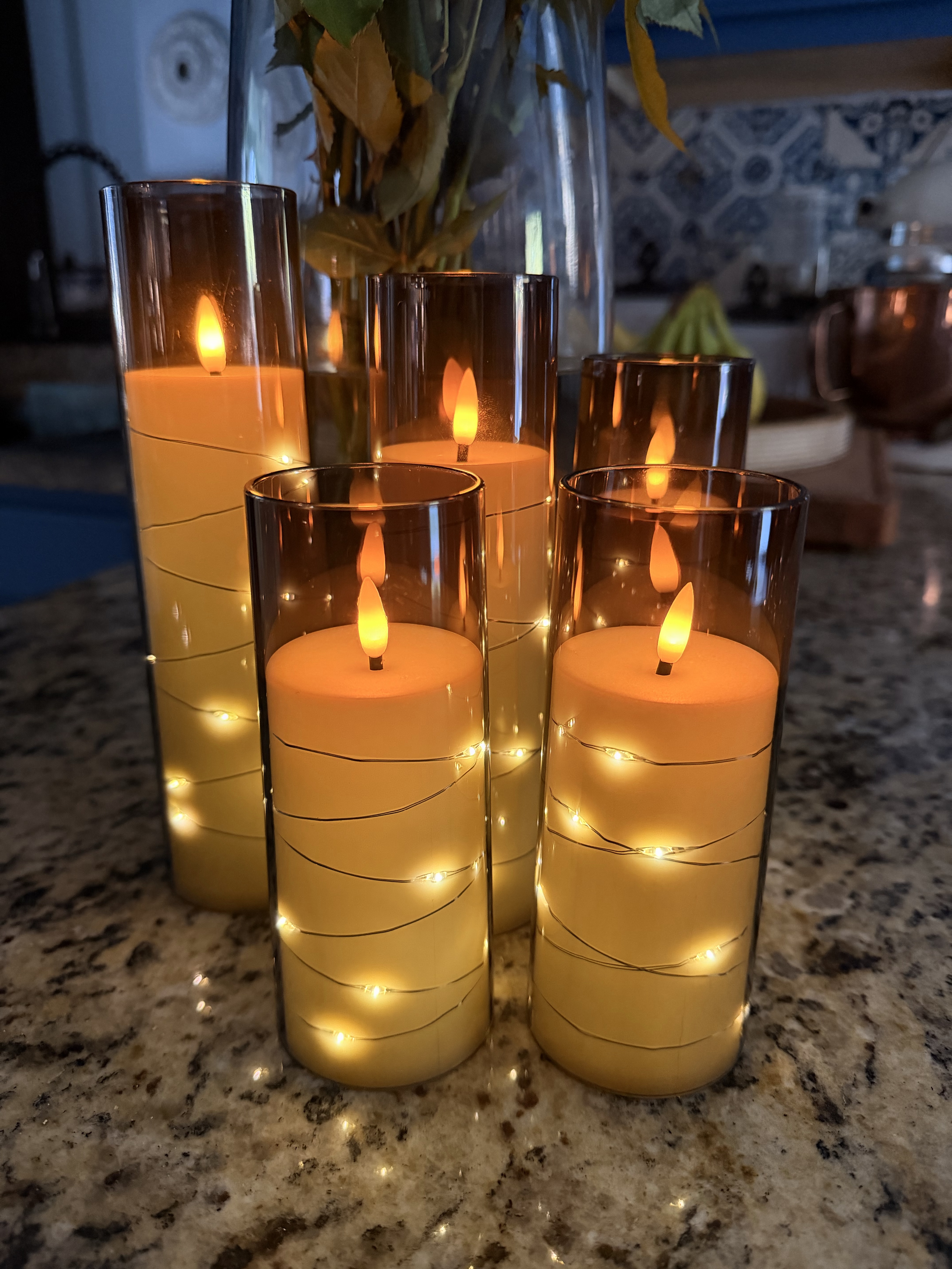 Thought I would share my Amazon code for these pretty flameless candles. I’m particular happy with this first set. You can adjust the brightness and they flicker very subtly.