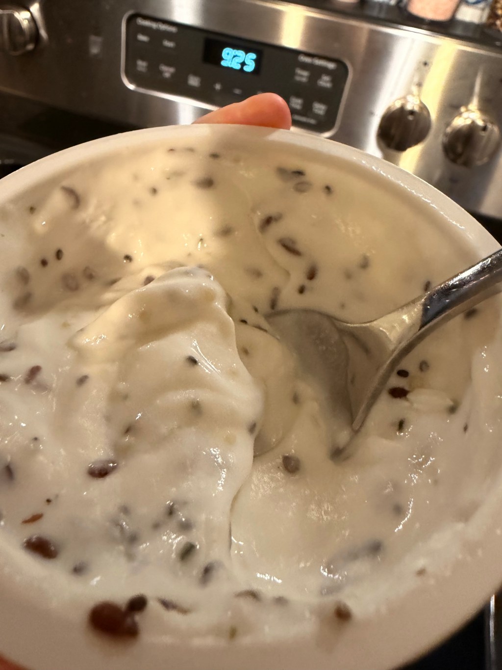 Yogurt with Trilogy Seeds.