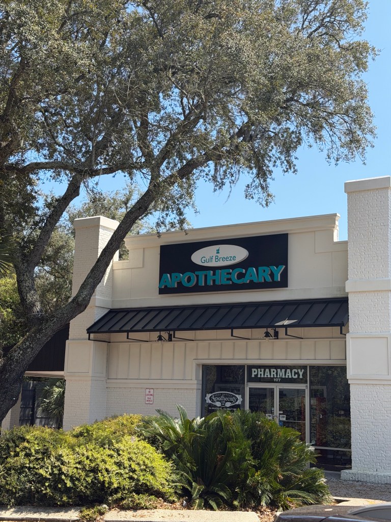 Gary and I drove over to Gulf Breeze to pick up my medicines today’s. I use a compounding apothecary pharmacy for a few of my prescriptions and it saves me a TON of money.