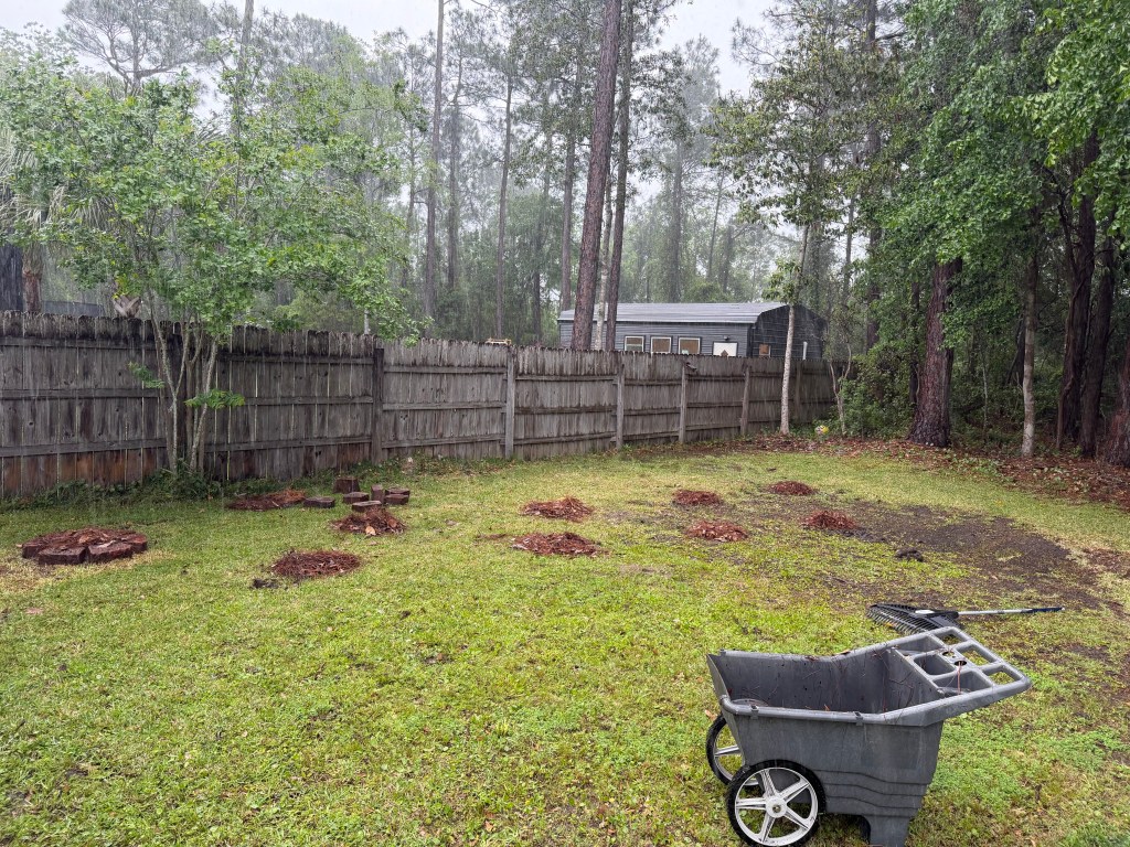 It’s very gloomy outside so we aren’t doing much of anything this afternoon. We are planting some Bamboo for privacy.